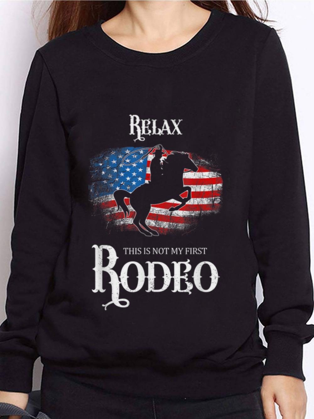 Best price Relax Not My First Rodeo Horse Riding American Flag shirt, Hoodie, Sweater, Longsleeve T-Shirt For Men and Women