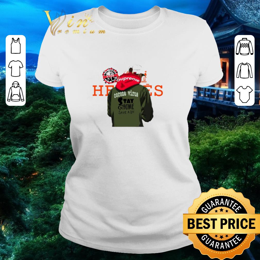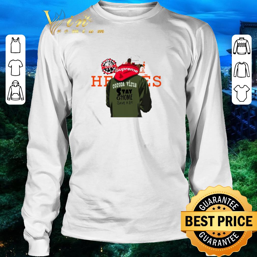 Nice Hermes supreme stop Coronavirus stay home save a life shirt, Hoodie, Sweater, Longsleeve T-Shirt For Men and Women