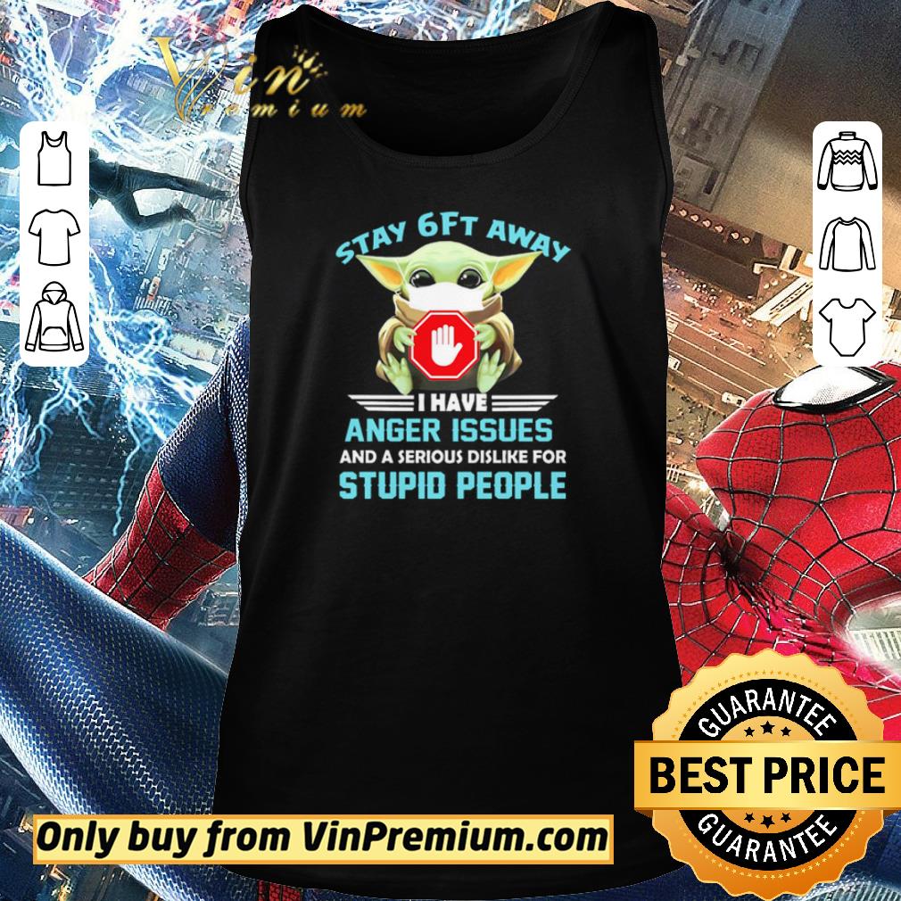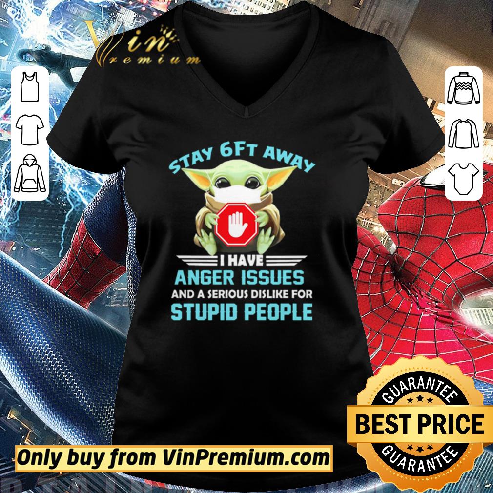 Original Baby Yoda stay 6 ft away I have anger issues and a serious dislike for stupid people shirt, Hoodie, Sweater, Longsleeve T-Shirt For Men and Women