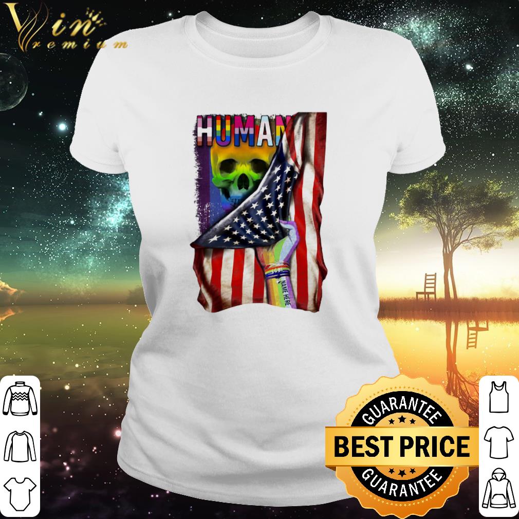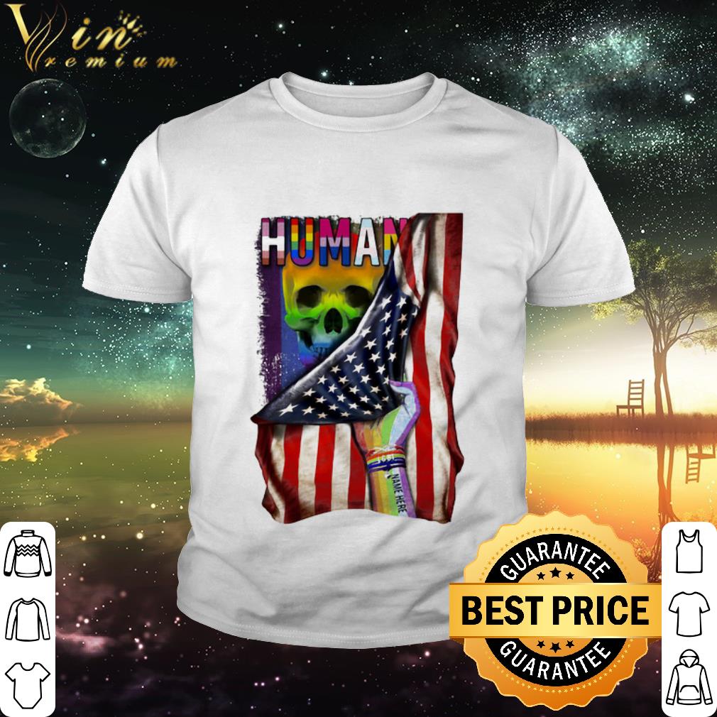 Pretty LGBT Human Skull Name Here American Flag 4th Of July shirt, Hoodie, Sweater, Longsleeve T-Shirt For Men and Women