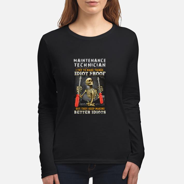 Pretty Skeleton maintenance technician i try to make things idiot proof shirt, Hoodie, Sweater, Longsleeve T-Shirt For Men and Women