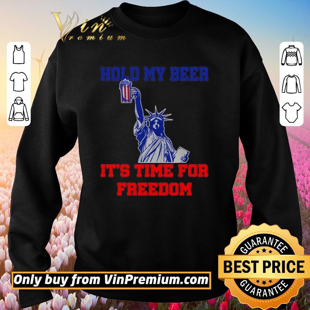 Top Hold my beer it’s time for freedom 4th of July shirt, Hoodie, Sweater, Longsleeve T-Shirt For Men and Women
